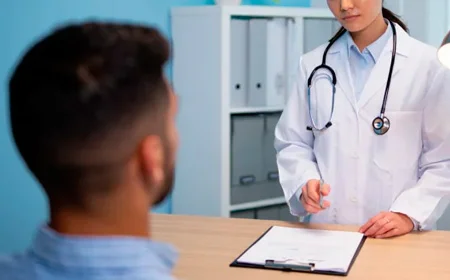 Врач и пациент беседуют за столом